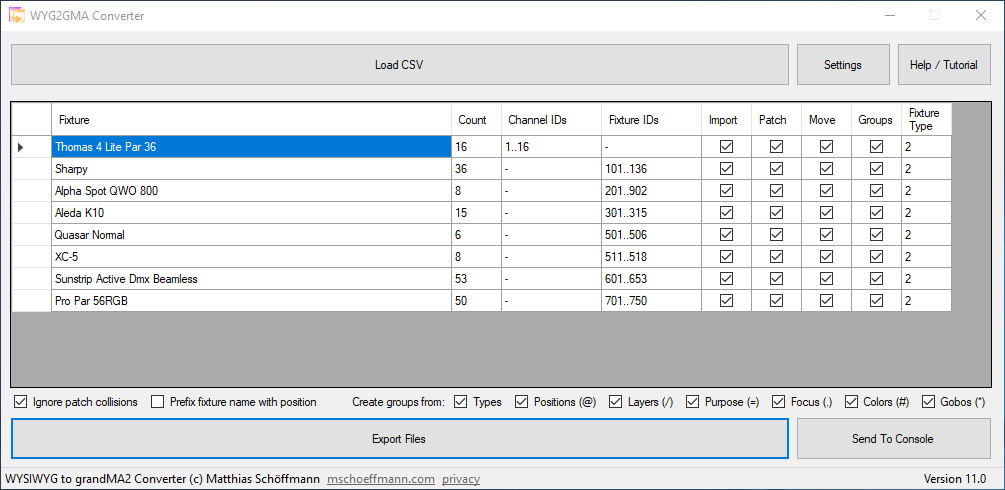 WYG2GMA Converter creates a grandMA2 fixture-setup based on your WYSIWYG file.